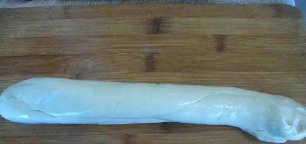 4感觉面团有韧性了,就搓成长条,表面抹油,盖上保鲜膜饧着备用