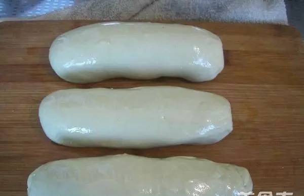 2,分成三个面剂,揉成长条,表面抹上油,依然盖上保鲜膜饧半小时