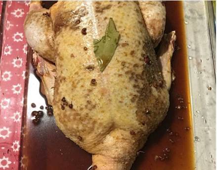 用盐和酱油按摩鸭子全身大概十分钟,把香叶和生姜等调料塞到鸭肚内,再放少许胡椒和料酒再鸭子表面上,用保鲜膜包住,放在冰箱冷藏一天,期间注意翻身腌制。