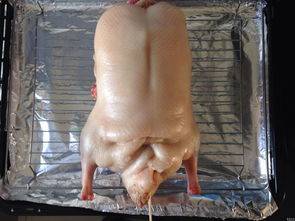 2腌制完成后,取出用开水淋几次,使鸭皮膨胀,接着在表面刷上蜂蜜和水比例为1:2调和的蜂蜜水,风干12个小时。