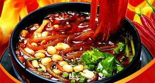 3、开大火,将骨头汤倒入,加盐(以汤料的咸度投放,略比平常的烧菜味重点即可)和鸡精,汤开后投入过油的干辣椒和花椒转小火慢熬10分钟后,便可按自己的喜好烫食菜品了。