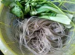 1.洗好青菜和香菜,粉丝提前两小时泡好