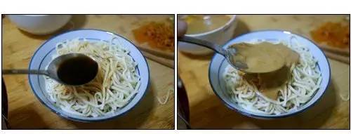 调料:白胡椒适量、芝麻酱3大勺、芝麻香油5大勺、香醋1大勺、酱油2大勺、白砂糖1大勺、辣椒油适量、卤牛肉汁6大勺、食用油2大勺。